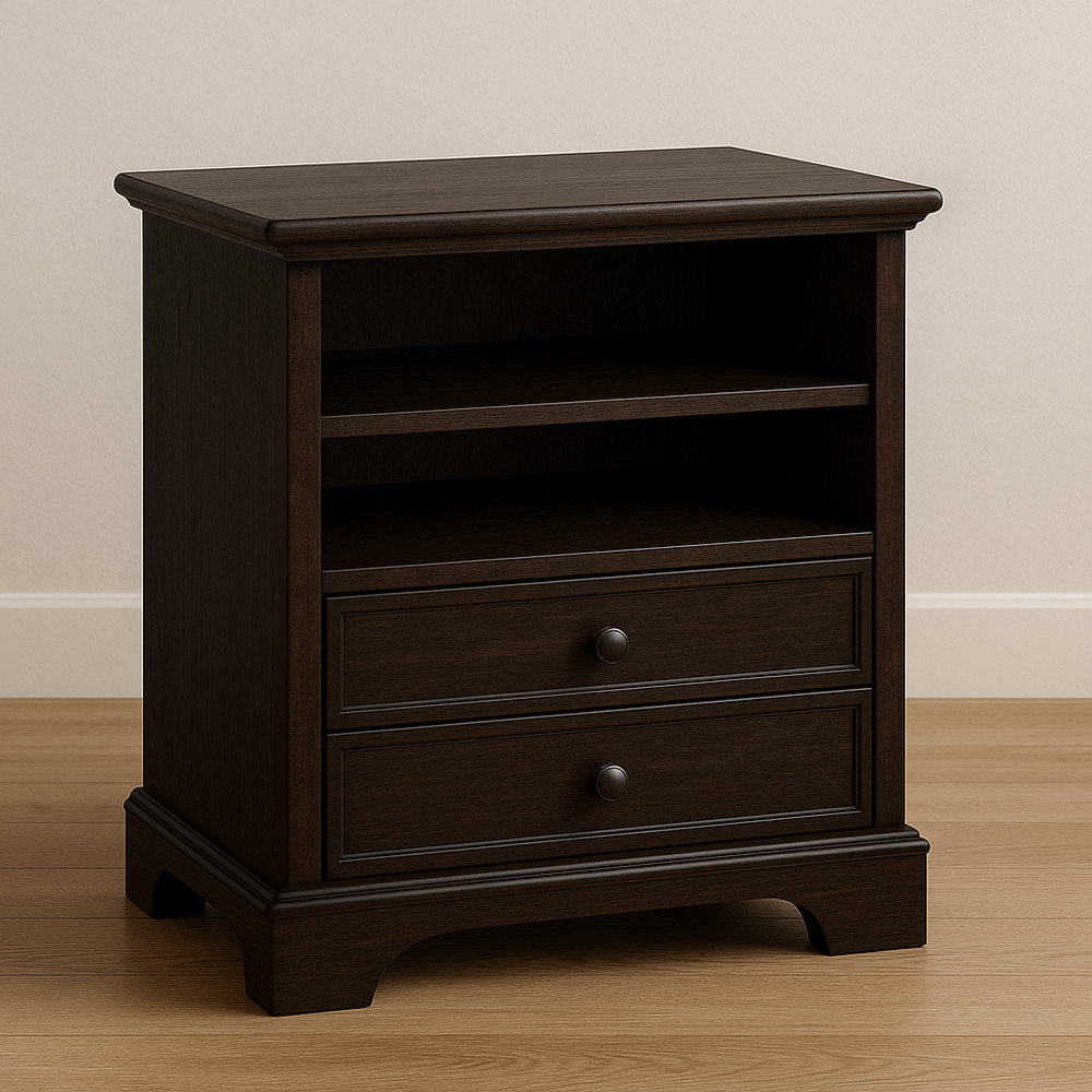 Table de nuit en bois foncé 2 tiroirs rectangulaire