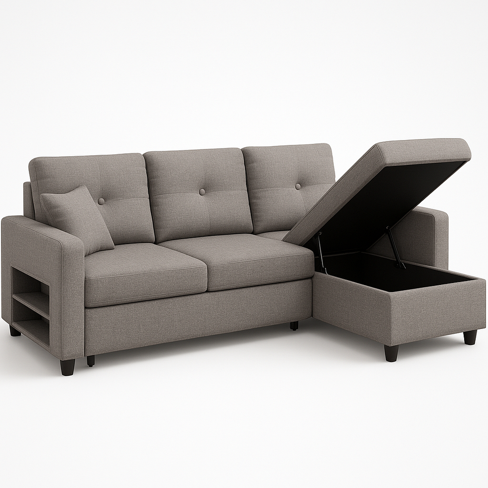 Canapé d'angle avec rangement tissu gris foncé 3 places