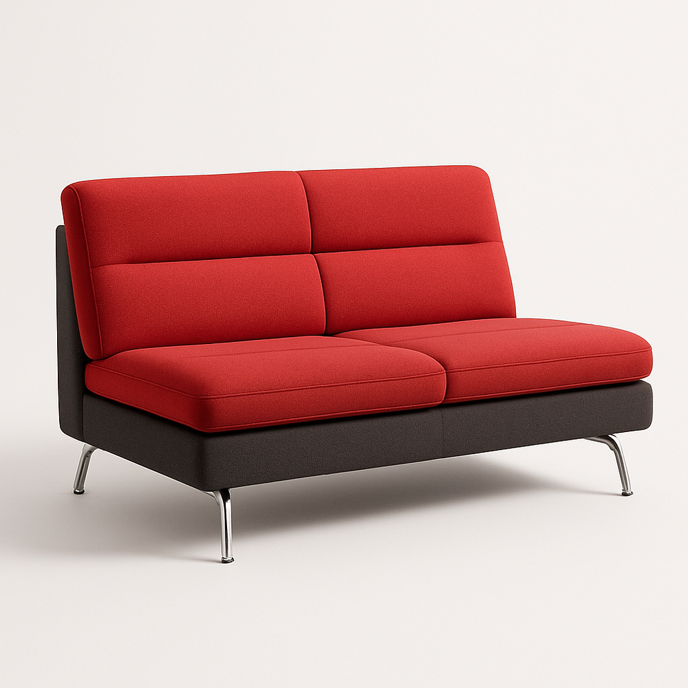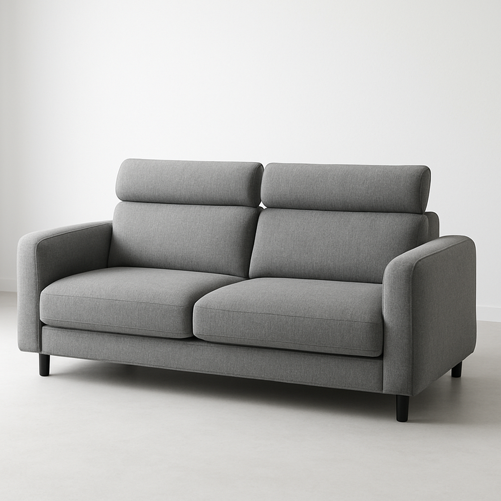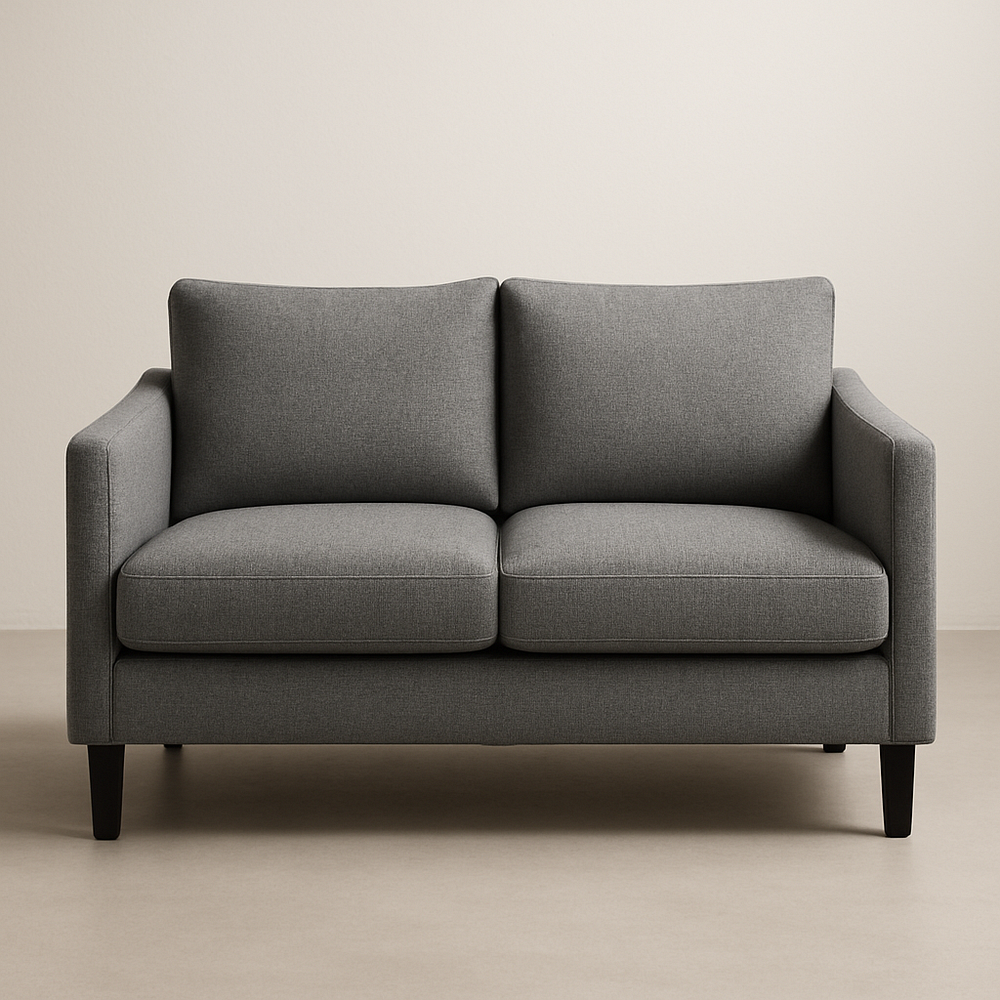 Canapé deux places en tissu gris rectangulaire rembourré en polyester
