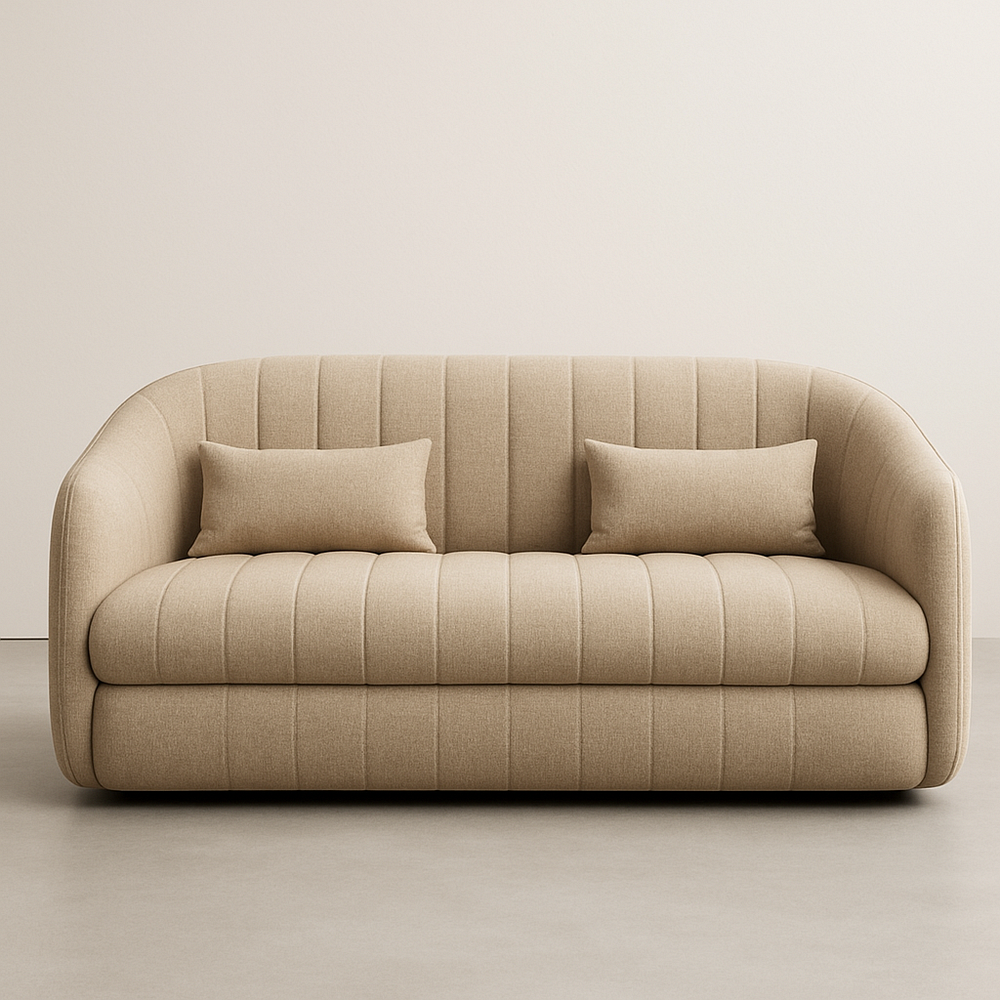 Canapé 2 Places Tissu Rayé Beige Repose-Bras Central