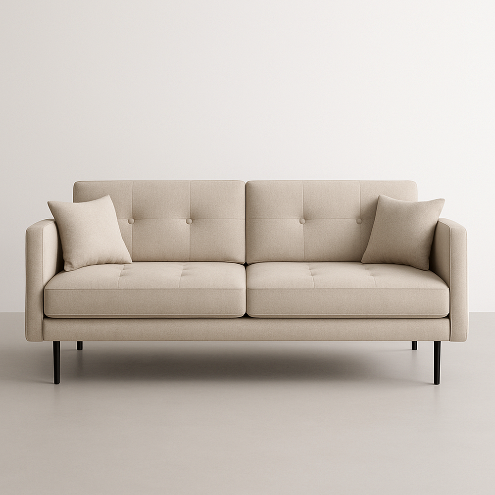 Canapé Moderne Tissu Lin Beige 3 Places Rectangulaire