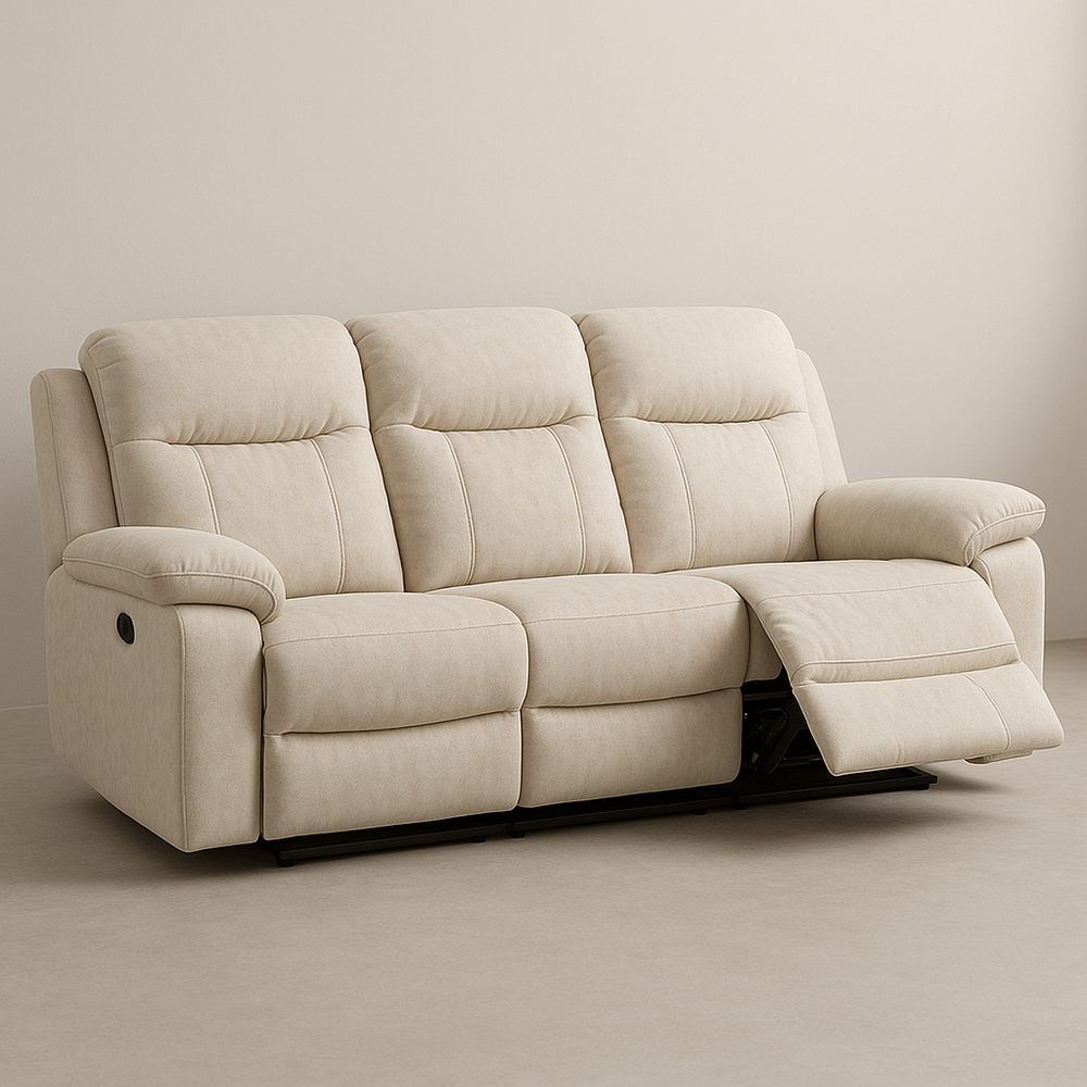 Canapé Relaxation 3 Places Beige Tissu Microfibre