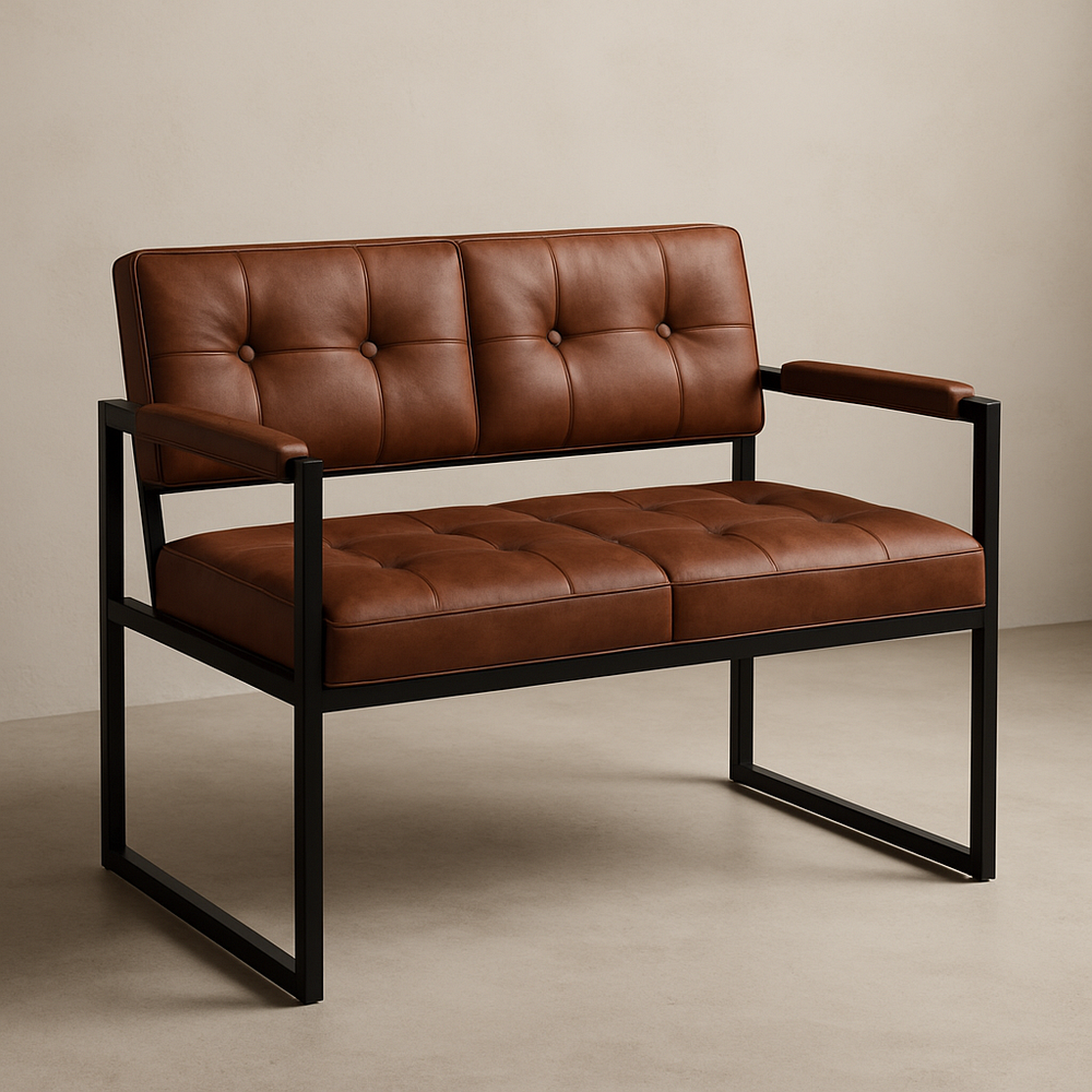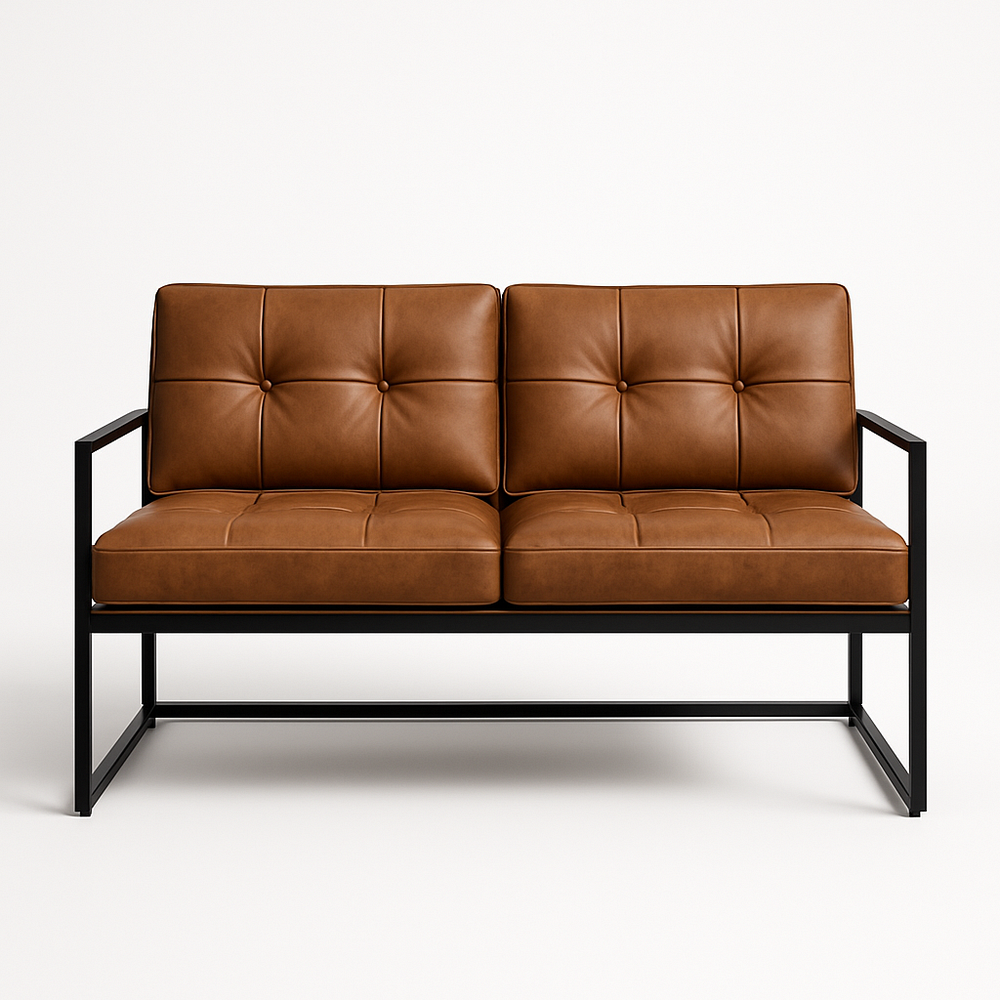 Canapé deux places cuir synthétique marron cadre métal moderne