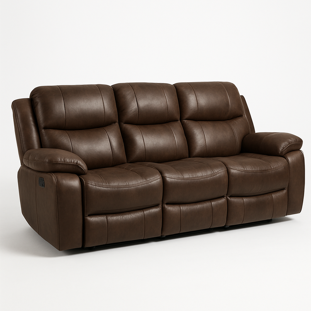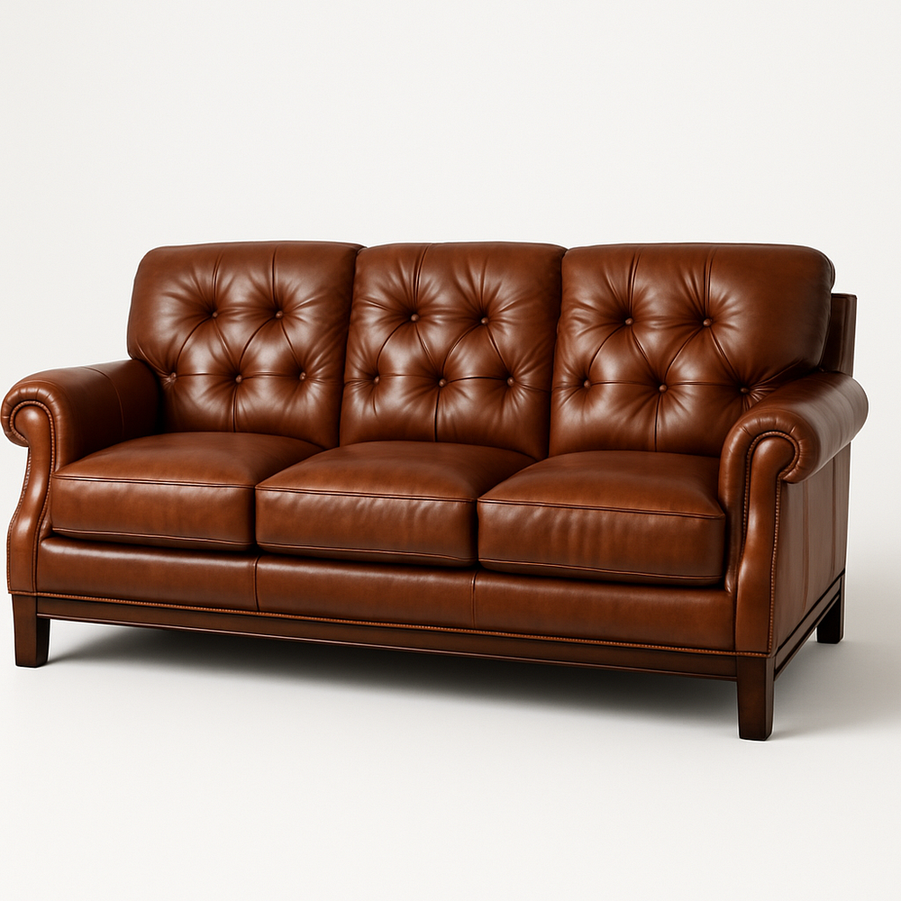 Canapé trois places cuir marron accoudoirs rembourrés moderne