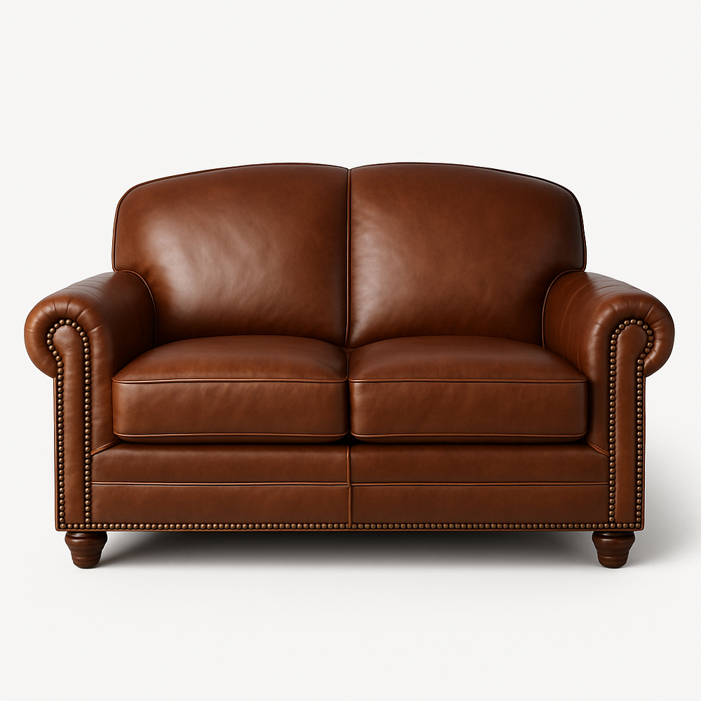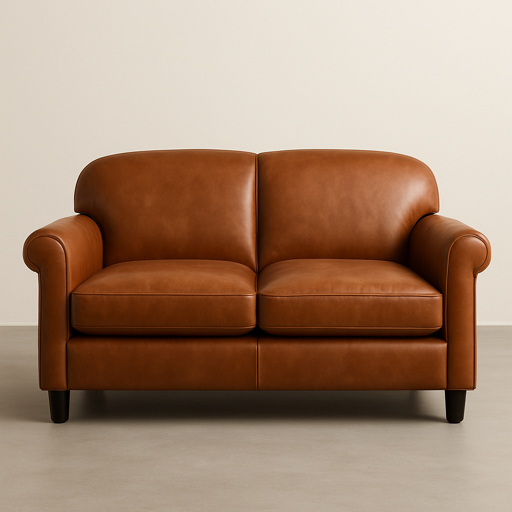 Canapé 2 places 140 cm Cuir Marron Cadre en Bois Moderne