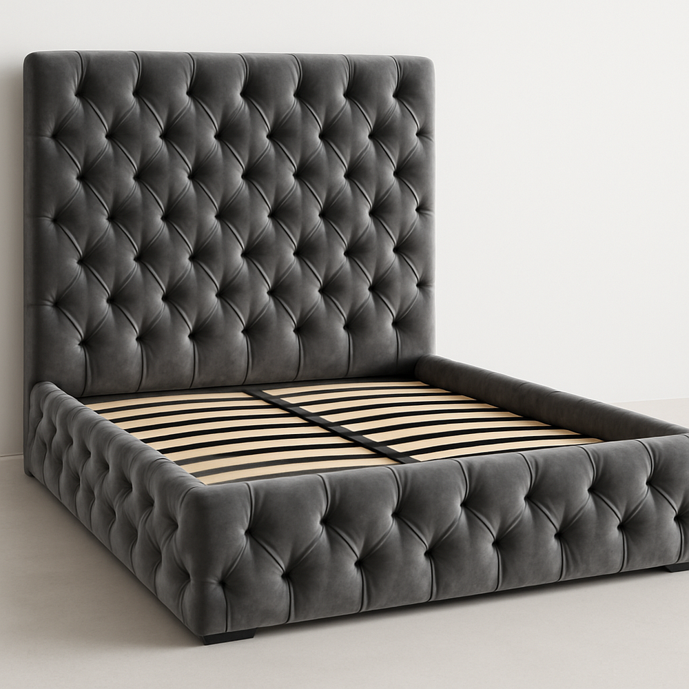 Lit double cadre tapissier tissu bois 160x200 cm structure moderne gris