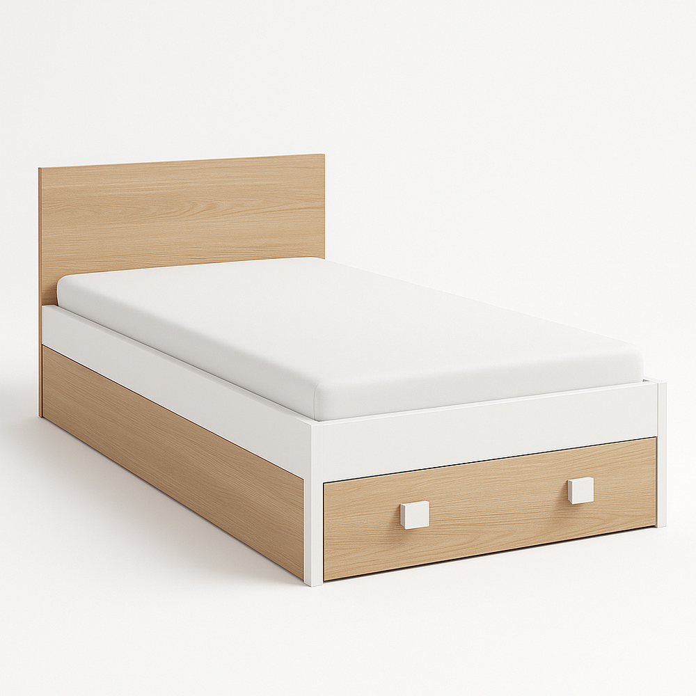 Lit simple bois aggloméré avec tiroir 90x200 cm Blanc/Chêne