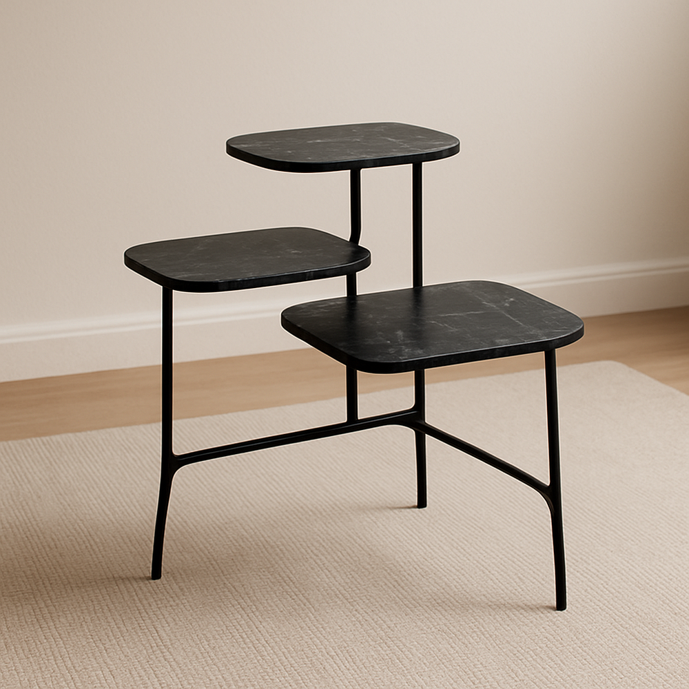Étagère étagée métal noir avec plateaux marbre rectangulaires