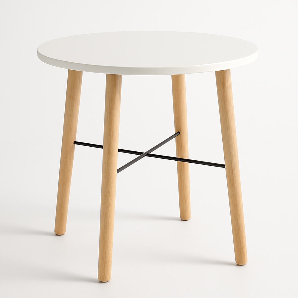 Table Basse Ronde Bois Métal Blanc diamètre 50 cm