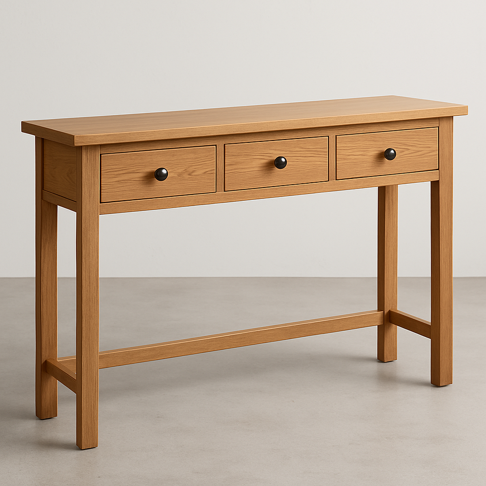 Console en bois avec 3 tiroirs forme rectangulaire couleur chêne clair