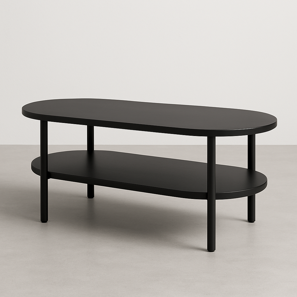Table Basse Ovale à Deux Niveaux Métal 120x60x40cm Noir