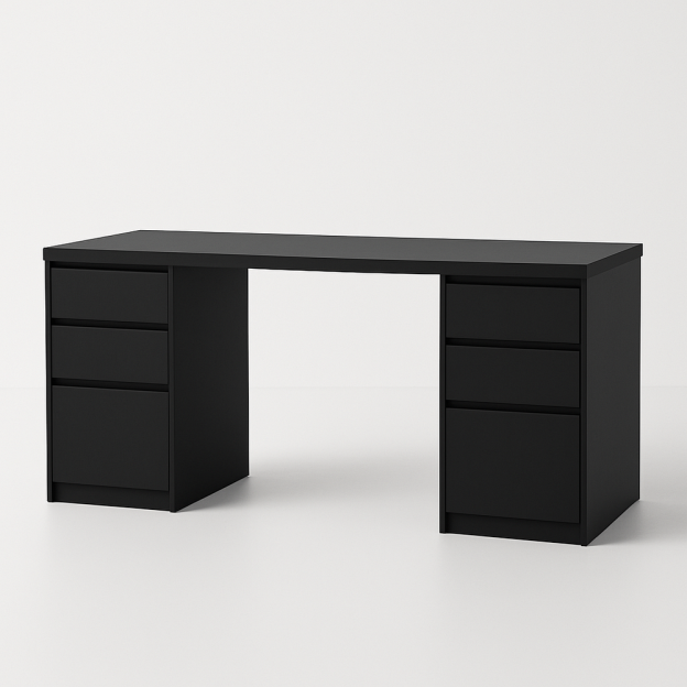 Bureau Rectangulaire avec Tiroirs Noir Bois Stratifié