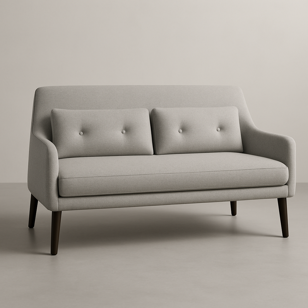 Canapé 2 Places Tissu Gris Clair Pieds Bois