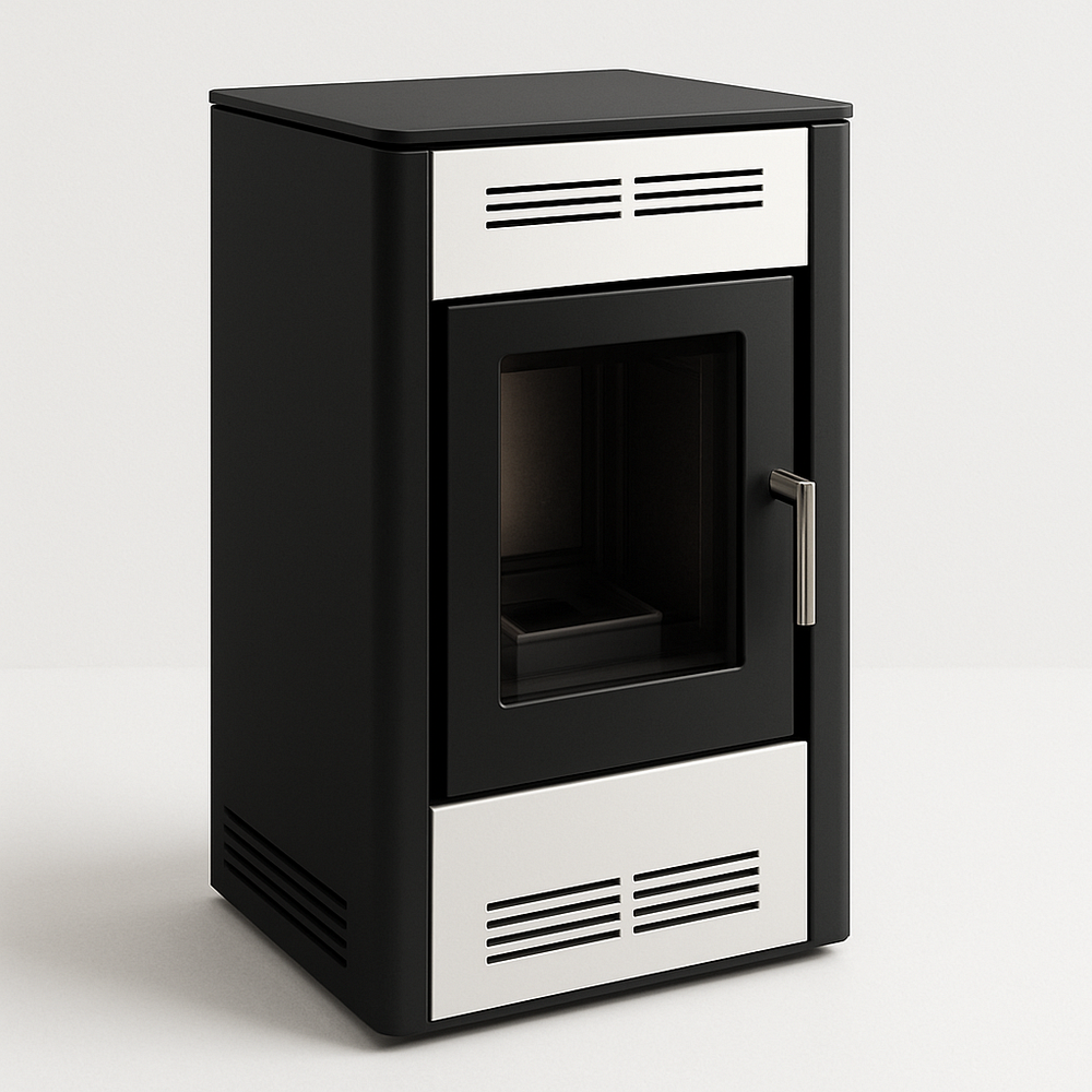 Poêle à granulés en acier 60x50x100cm rectangulaire noir/blanc